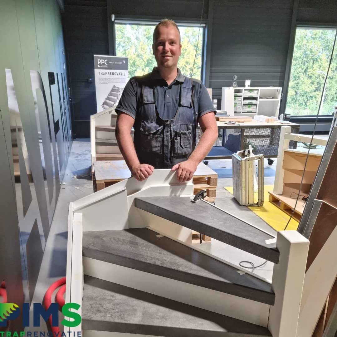 Welkom bij PIMS Traprenovatie! Mijn naam is Pim, en met trots kan ik zeggen dat ik al 20 jaar actief ben in dit prachtige vak. Mijn reis begon als stoffeerder, maar door de jaren heen heb ik mij gespecialiseerd in het renoveren van trappen met overzettreden. Dit is mijn passie, en ik streef ernaar om elke trap te transformeren tot een ware blikvanger in uw huis.